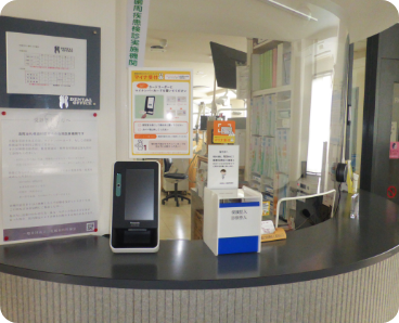 ご来院されましたら、まずは受付をお願いいたします。受付をスムーズに行うためにマイナンバーカード読み取り機を設置しております。