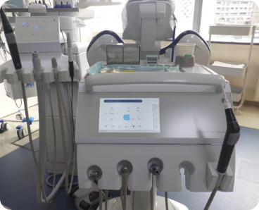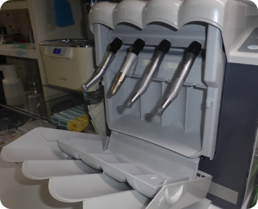 診療ユニット各々に口腔外バキュームが設置されており、診察室内の環境を清潔に保っております。プライバシーの配慮のため仕切りを設置し、半個室となっております。診療室の右側面は一面の窓になっており、明るさと開放感が感じられます。